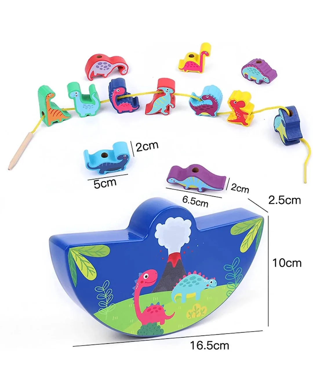 A fun and educational wooden stacking game with colorful dinosaur pieces. Promotes motor skills, patience, and parent-child interaction.