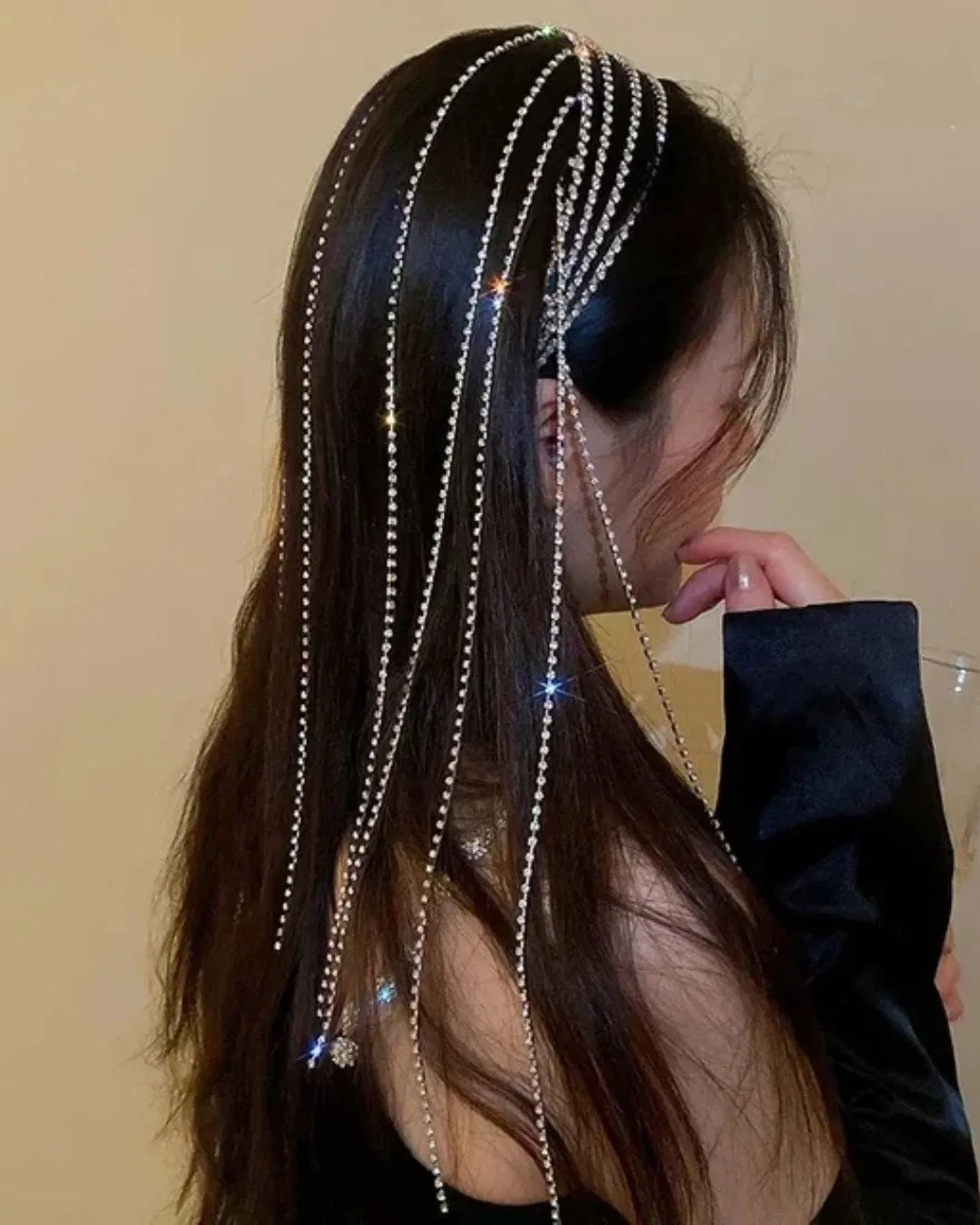 Sparkling rhinestone tassel headband for weddings, parties, and festive wear. Stylish, elegant, and easy to wear.